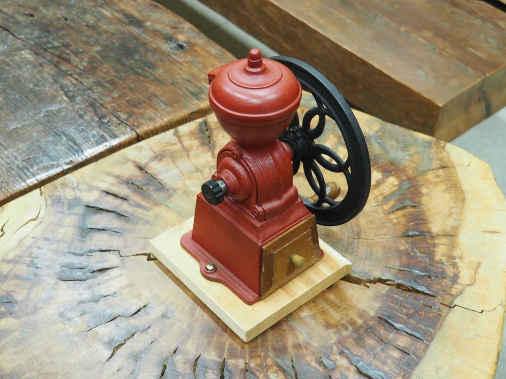 ヤフオクで落とした カリタのコーヒーミルが届きました 木の台を取り付けました