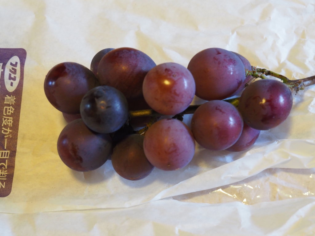 緑のカーテンの巨峰の初収穫です 素人にしては甘い