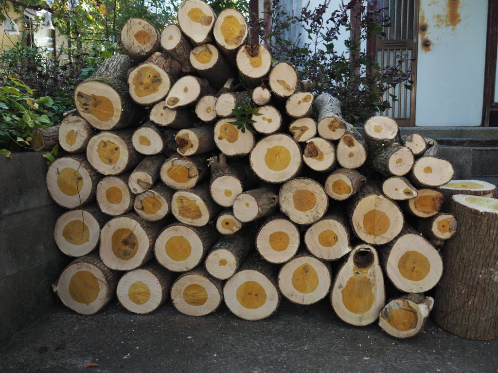 先日 ハゼの木を貰いに行ってきました 軽トラ2台分 これは1台分です もう少しして割り ひと夏乾燥し 来シーズンに焚きます