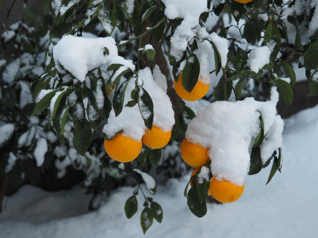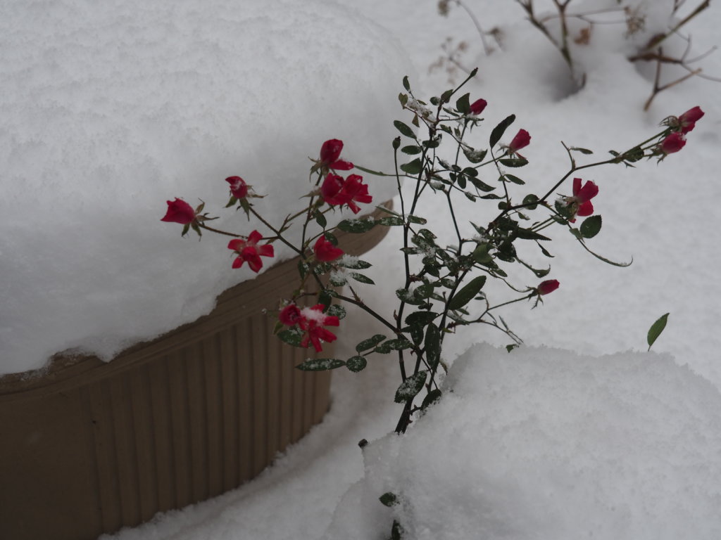 白黒の世界にカボスの黄色 ミニバラの赤が引き立つ