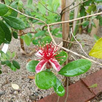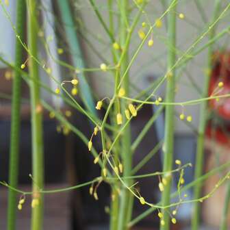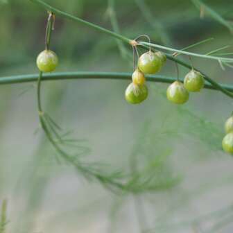 プランター栽培で苗から2年目の アスパラガス 実がなりました5ミリちょっと これから赤くなるそうです 右は花