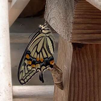 アゲハの幼虫が蛹になりました 右側から30時間後 立派な蛹に